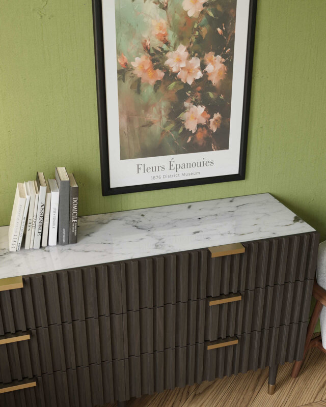 Mit dieser Dekorglasplatte verleihen Sie Ihrer Kommode oder Ihrem Sideboard einen neuen Look. Einfach Wunschmasse eingeben und konfigurieren.