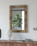 Der MDF Holzrahmen in mit der Oberfläche Altholz Braun macht diesen Spiegel zu einem schönen Designelement.